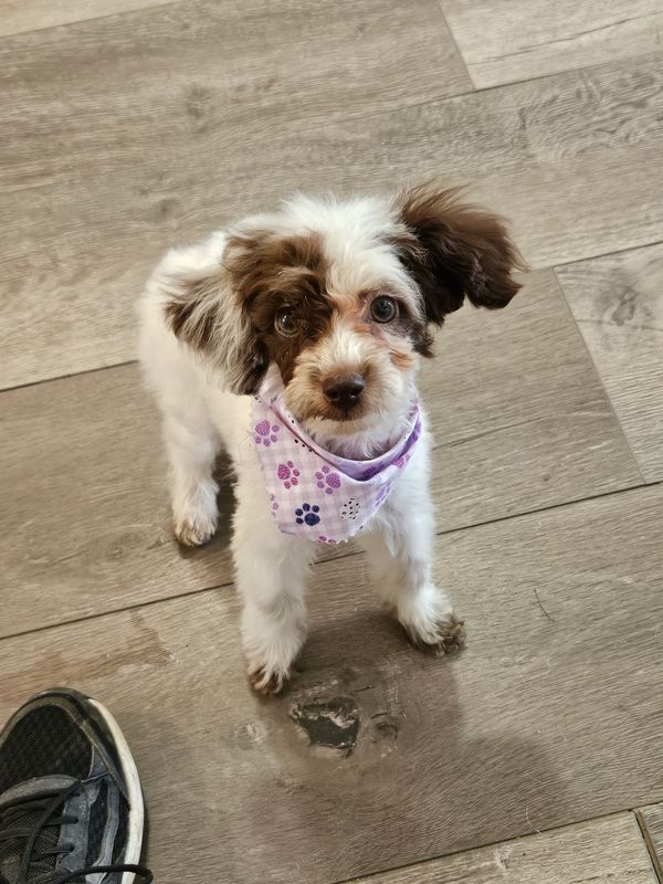 Beautiful 😍 parti white with apricot. Will come with vet check and first shots. Parents Are on premises. Should stay around 7lbs